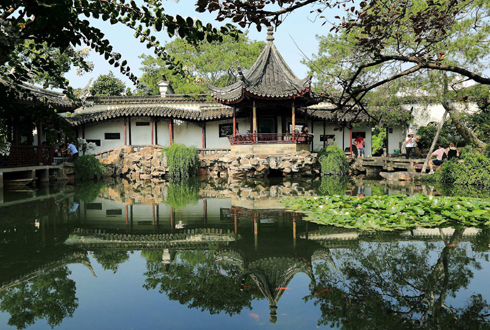 拙政园,位于江苏省苏州市,始建于明正德初年(16世纪初),是江南古典园林的代表作品。拙政园位于苏州城东北隅(东北街178号),截至2014年,仍是苏州存在的最大的古典园林,占地78亩(约合5.2公顷)。全园以水为中心,山水萦绕,厅榭精美,花木繁茂,具有浓郁的江南水乡特色。
